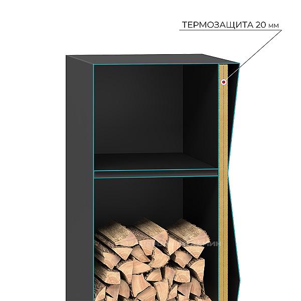 Между внешней изогнутой и внутренней прямой стенкой дровницы находится минеральная вата толщиной 20мм.