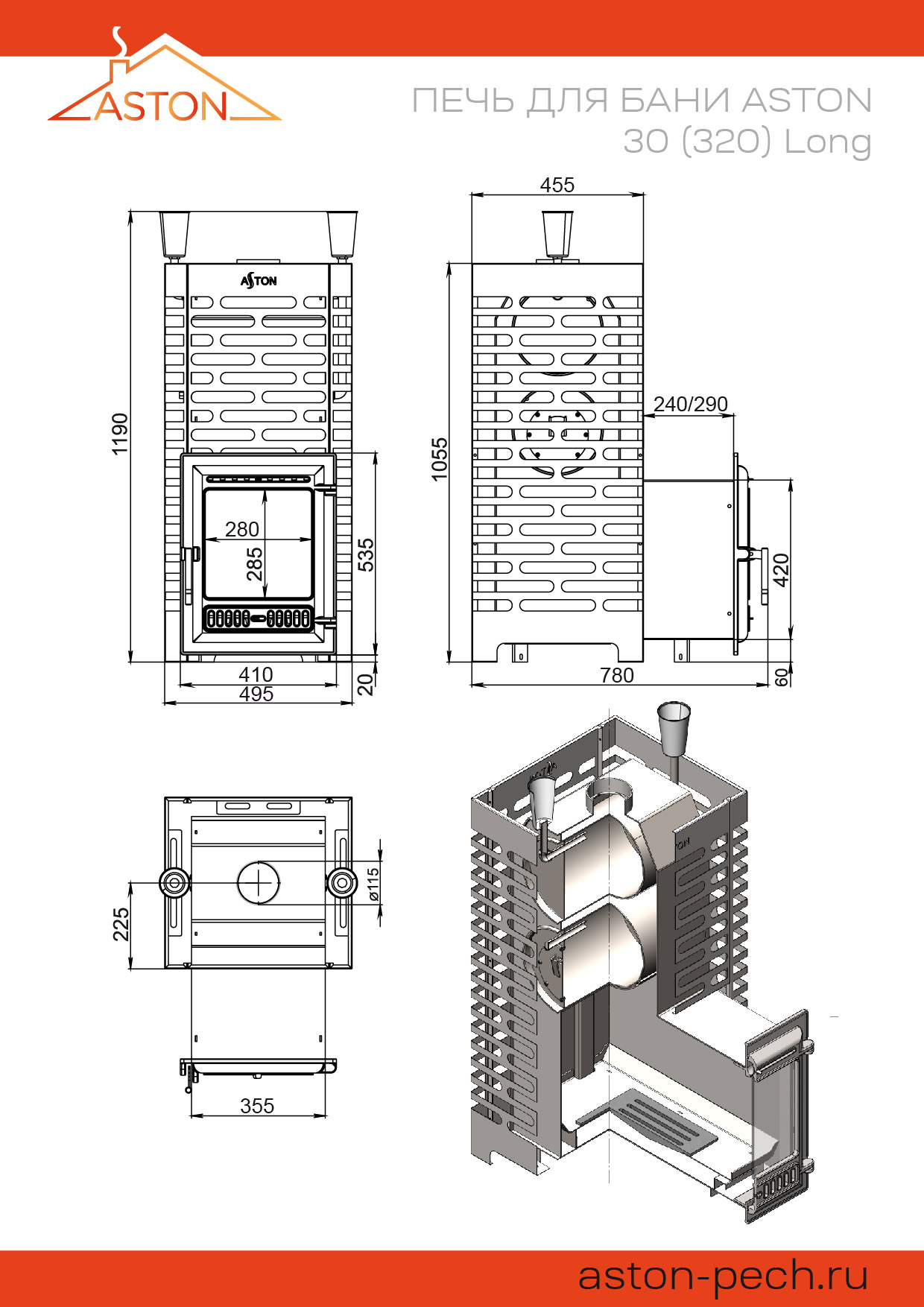 Смотреть всеПечь для бани ASTON 24 (310) со стеклом подходит для парных объёмом от 28 до 32 м3.