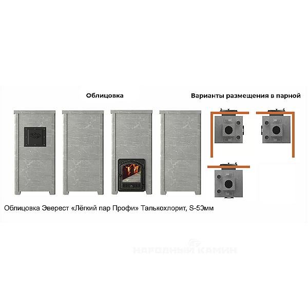 Печь для бани Эверест Легкий пар Профи каменка из нерж. стали, Талькохлорит, S-50 мм