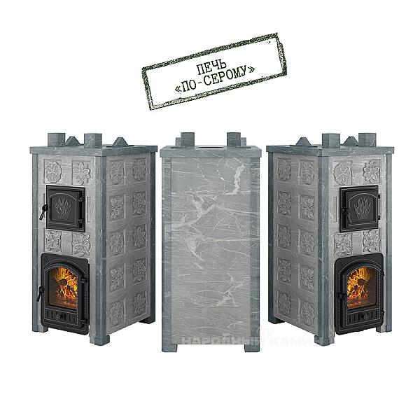 Описание Эверест Легкий пар Профи каменка «по-серому», Талькохлорит, Б/В, Резная (2 стор.+фасад)
