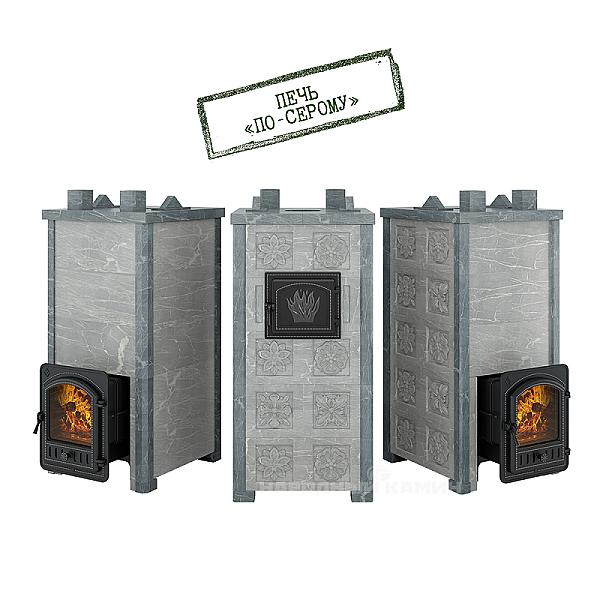Печь для бани Эверест Легкий пар Профи каменка «по-серому», Талькохлорит, S-50 мм, Резная (2 стороны)