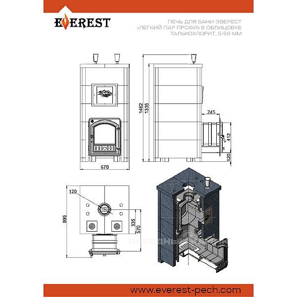 Поворотная чугунная банная печь EVEREST Лёгкий Пар ПРОФИ предназначена для обогрева парных помещений объёмом до 40 кубических метров и получения пара при эксплуатации в частных и коммерческих банях.