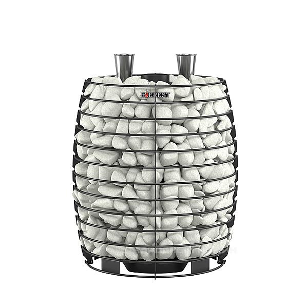 Усиленная кольцевая сетка конвектор прекрасно подчеркивает стиль и дизайн печи. В неё помещается около 140 – 200 кг камней в зависимости от их вида, плотности укладки и фракции.