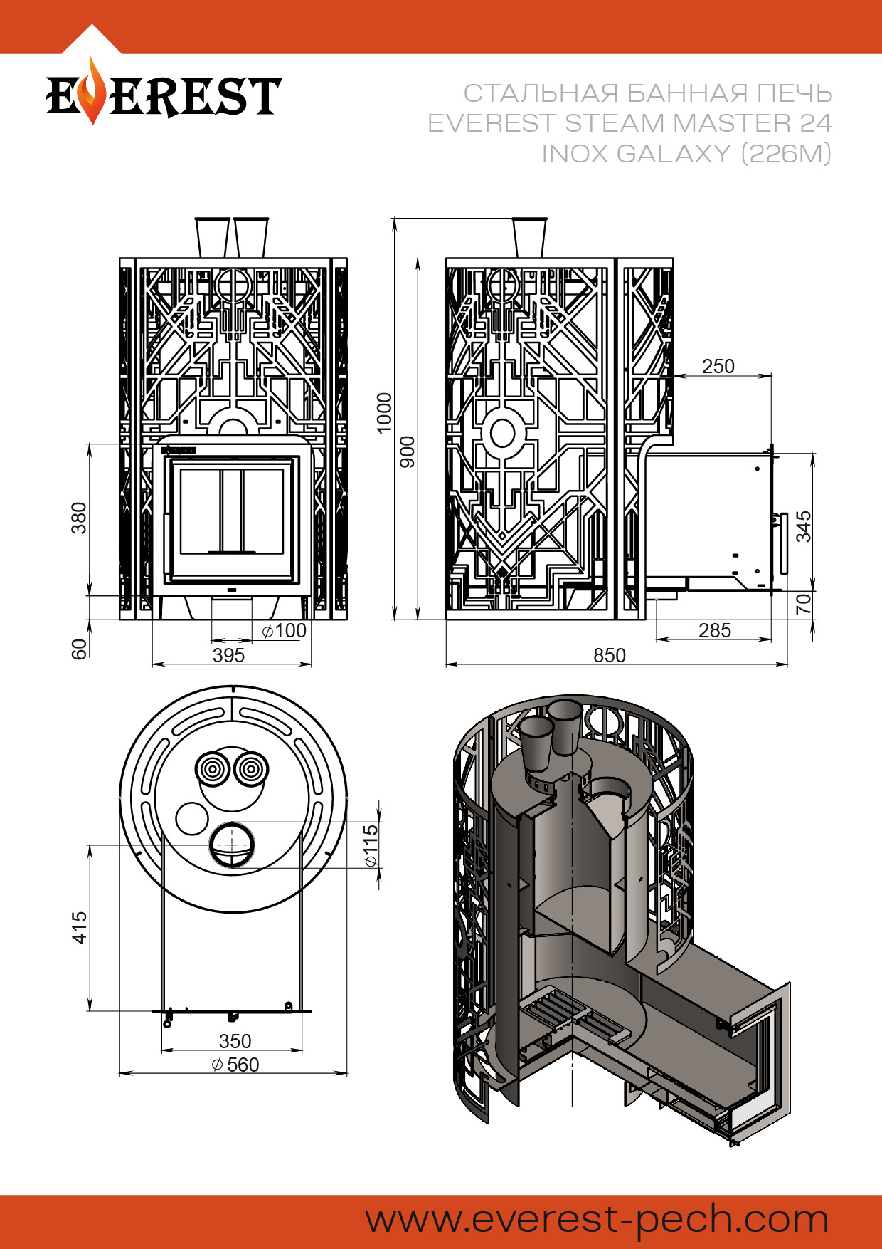 Печь для бани Эверест "Steam Master" GALAXY 24 INOX (226М)
