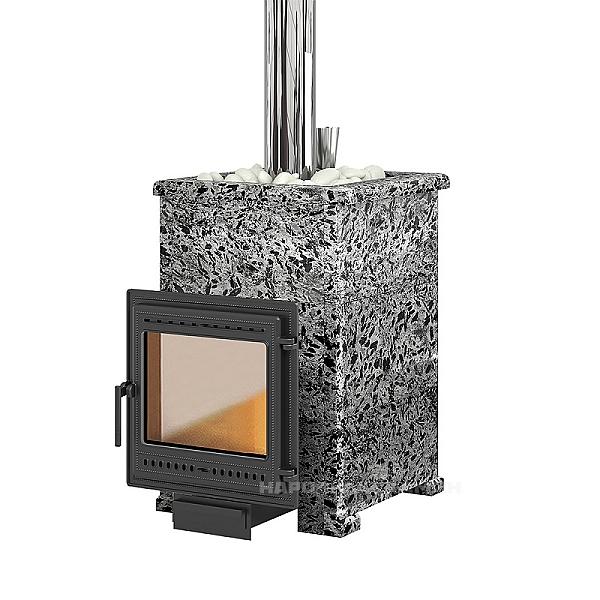 В комплект также входит облицовка из пироксенита толщиной 40 мм. Облицовка из натурального камня смотрится оригинально и способна существенно преобразить интерьер вашей бани. Помимо декоративной функции, пироксенит аккумулирует тепло, способствует более равномерному его распределению в парной, и благодаря данному натуральному камню температура в парной долго не падает. Облицовка из натурального камня также отличается долговечностью, она прослужит вам долгие годы. Еще один плюс данной облицовки – простота ухода. Достаточно просто протереть её губкой. Пироксенит – экологически чистый материал, он не выделяет вредных веществ при нагревании, полностью безопасен для здоровья.