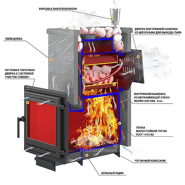 | Вид каменки | комбинированная | Облицовка+закрытая | Облицовка+закрытая | Облицовка+закрытая |