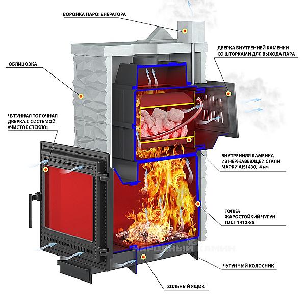 | Вид каменки | комбинированная | сетка для камней | открытая | Облицовка+закрытая |