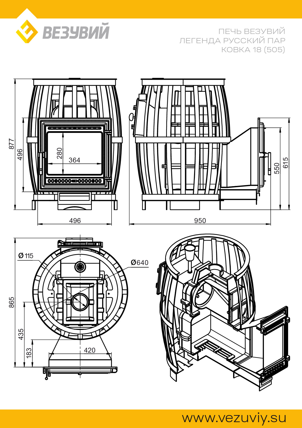 Печь для бани Везувий Легенда Русский пар Ковка 18 (505)