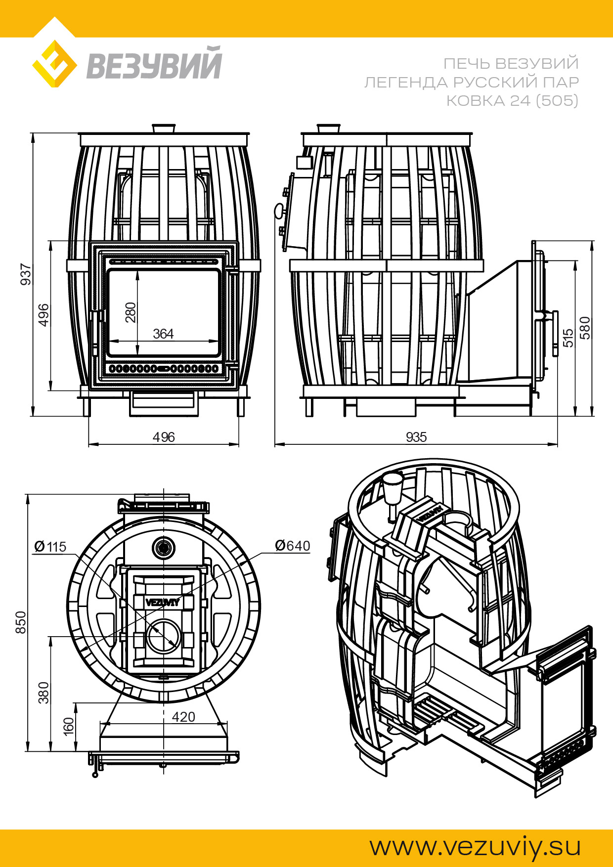 Печь для бани Везувий Легенда Русский пар Ковка 24 (505)