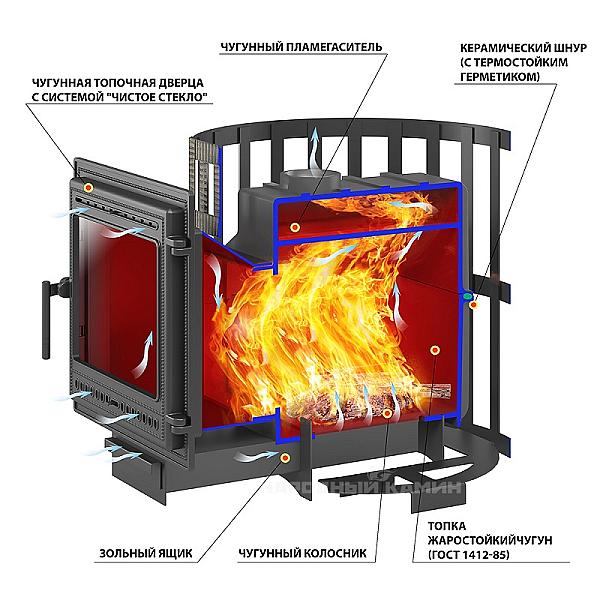 Схема Банная чугунная печь Легенда Ретро 24 Ковка (505)