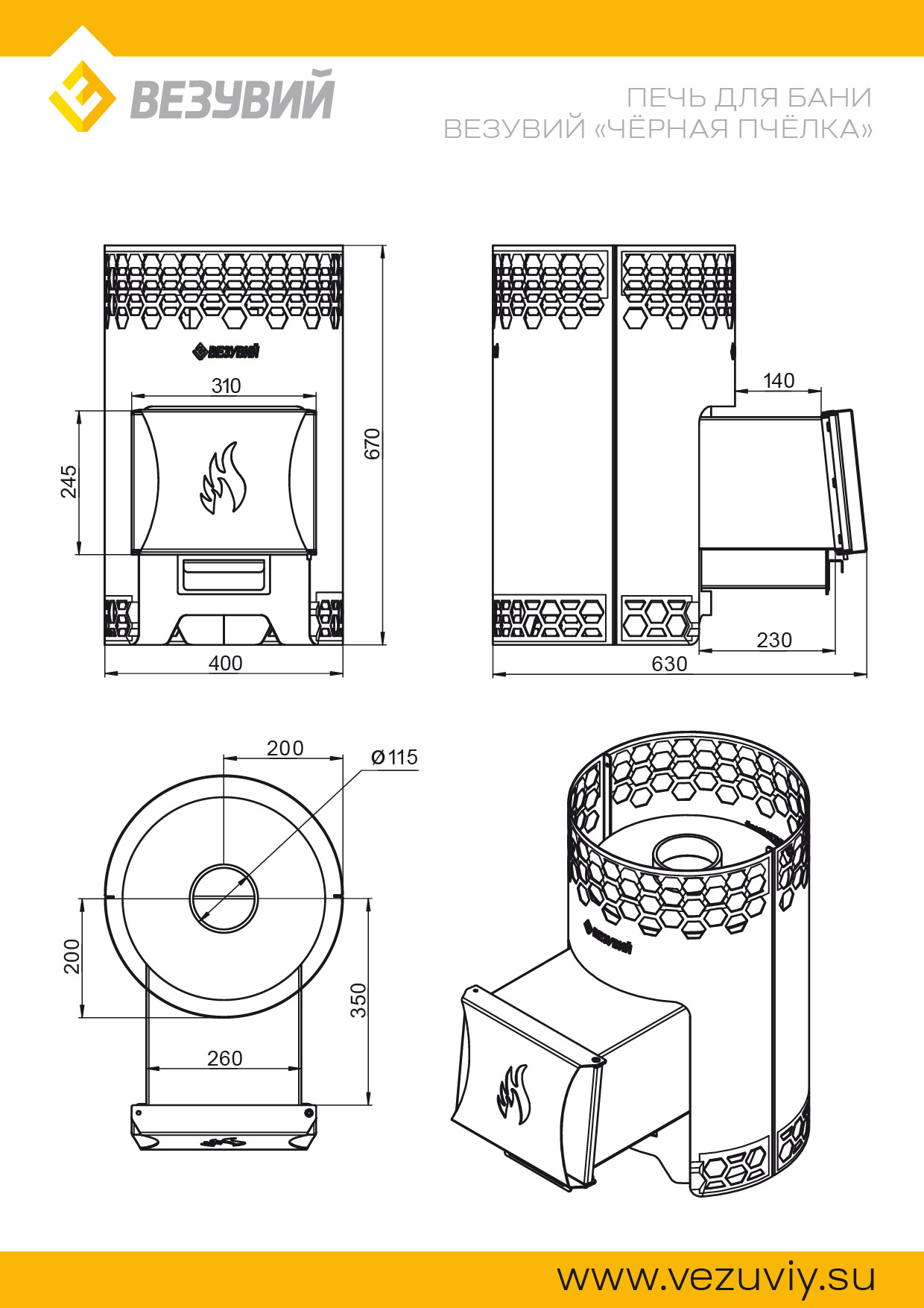 Печь для бани Везувий "Чёрная Пчёлка"