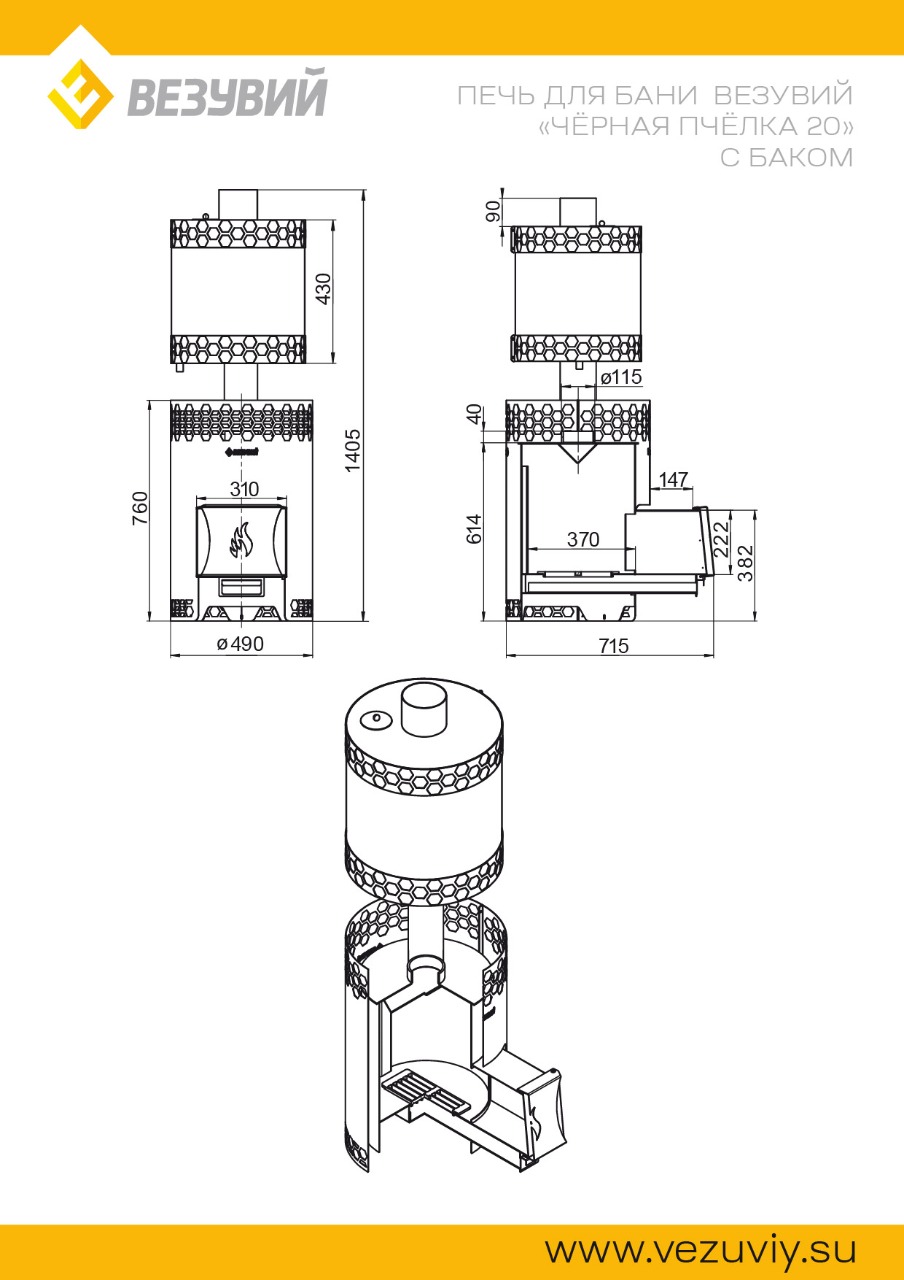 Печь для бани Везувий "Чёрная Пчёлка 20" с баком