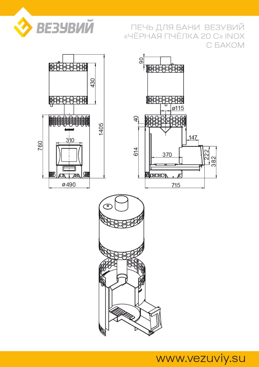 Описание Везувий "Чёрная Пчёлка 20 С" INOX с баком