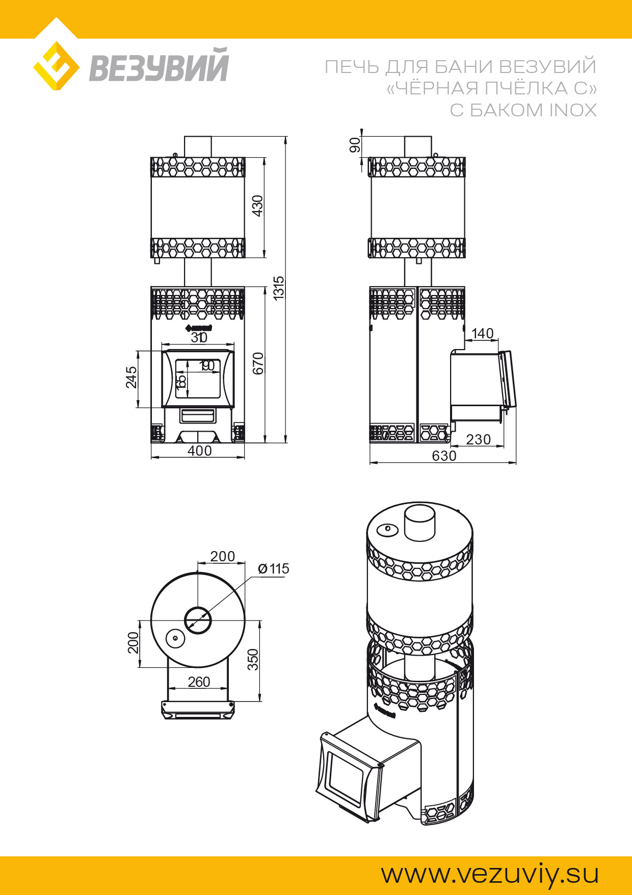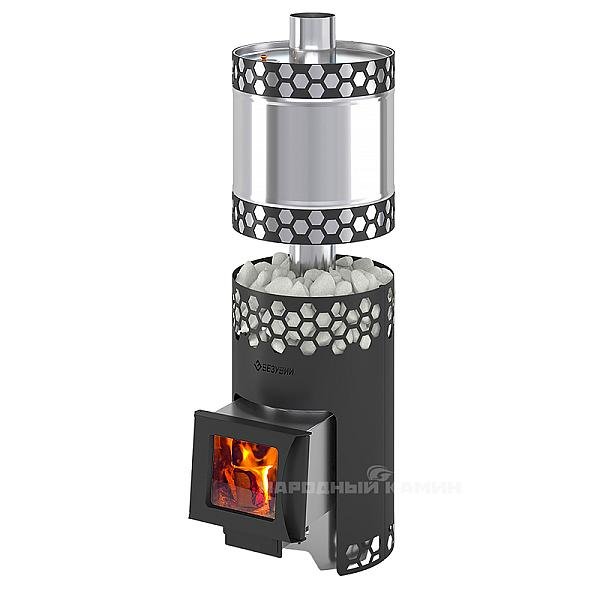 Печь для бани Везувий "Чёрная Пчёлка С" INOX с баком