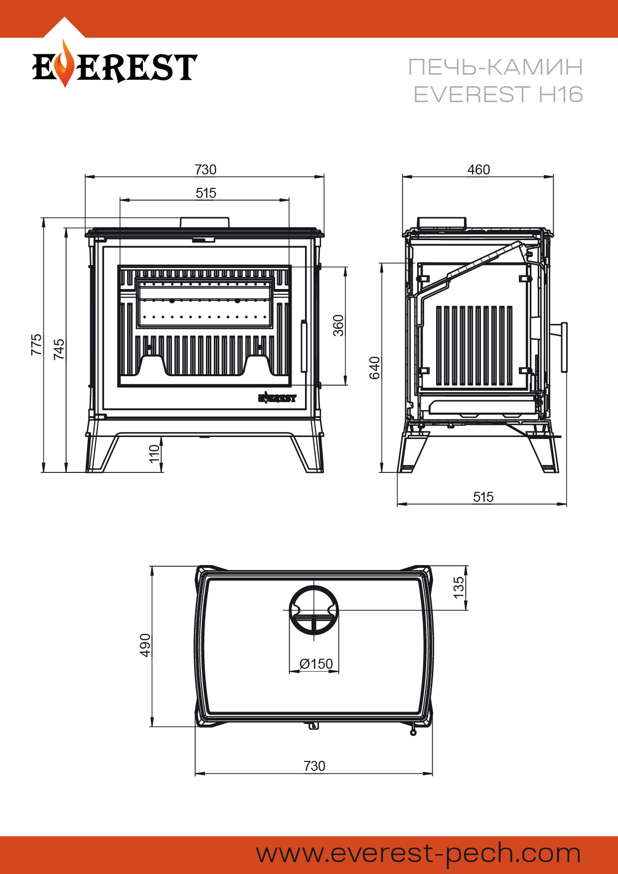 Смотреть всеПечь-камин EVEREST Н16 изготовлена из качественного жаростойкого чугуна с толщиной стенок 6-8 мм.