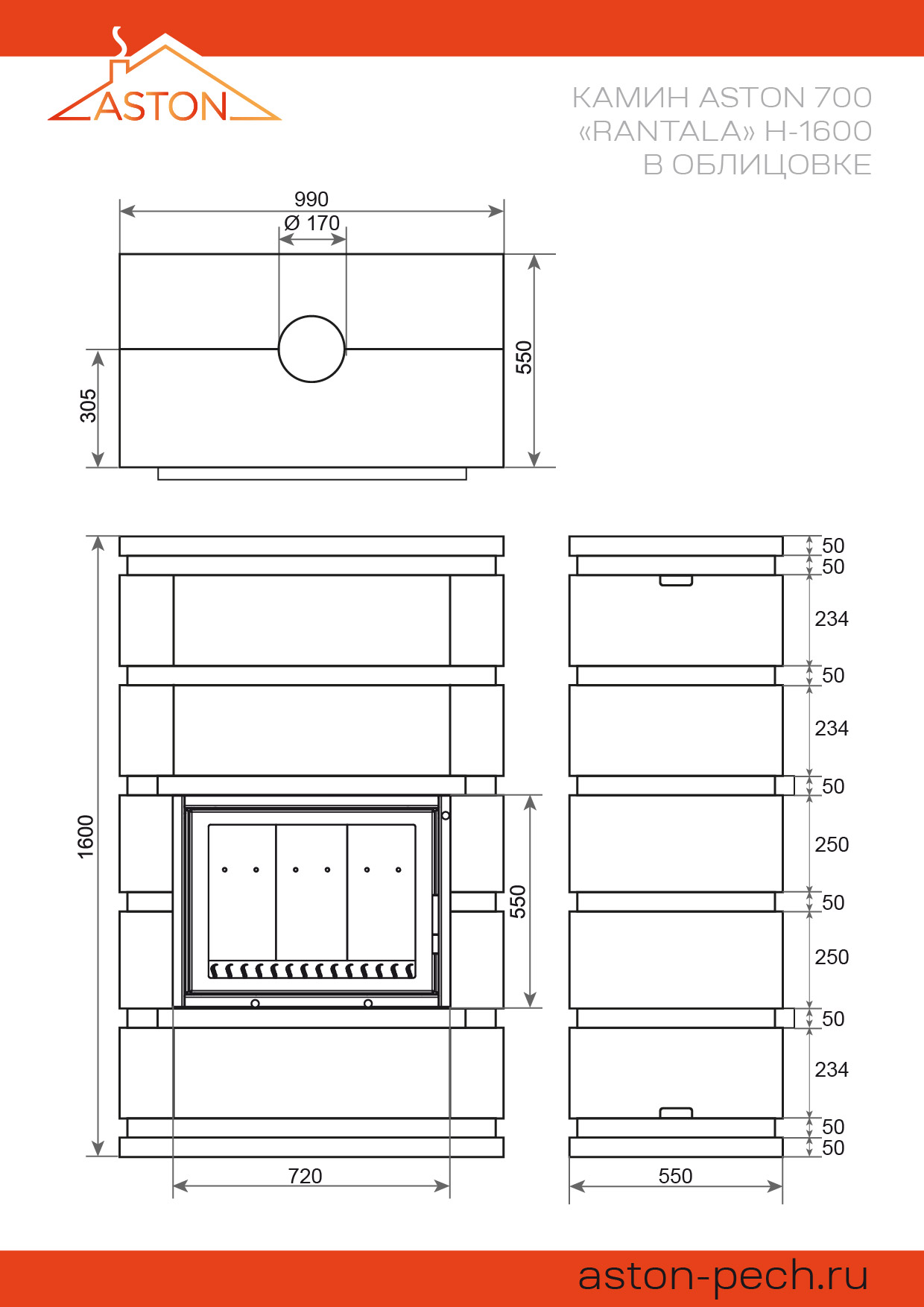 Схема ASTON каминная топка 700
