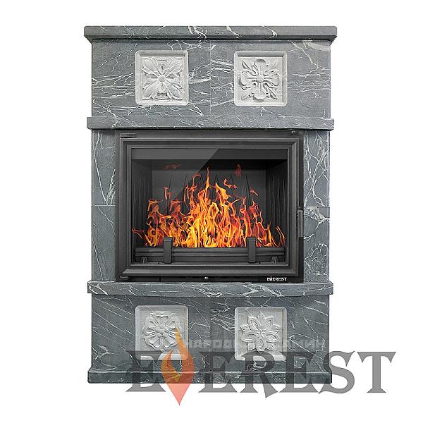 На отдельных элементах облицовки нанесён объёмный узор для индивидуализации дизайна камина. Узор наносится резьбой по камню в заводских условиях. Мы предлагаем несколько растительных орнаментов, которые можно выбрать при заказе камина.