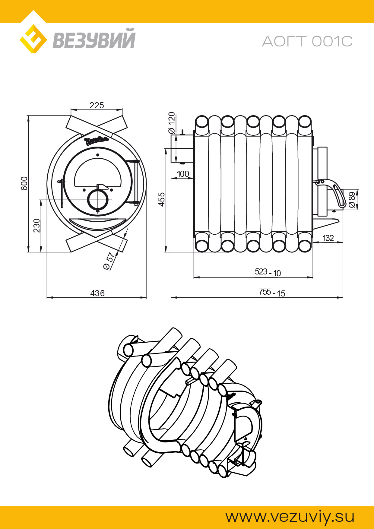 Схема Печь отопительная Везувий АОГТ 001С Скачать (0.28мб)