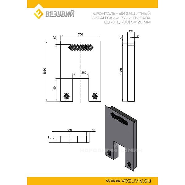 Описание Везувий Фронтальный защитный экран Скиф, Русичъ, Лава (ДТ-3,ДТ-3С) S=120мм