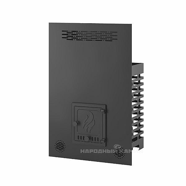 Фронтальный экран устанавливается на топочный тоннель сверху, позволяет на своей основе собрать стену между парной и предбанником из кирпича или дерева.
