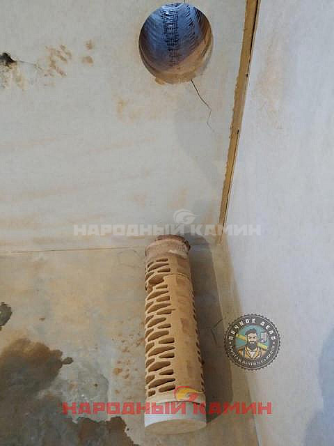 Термоизоляционные стены и термокороб сделаны из плит силикаткальция Silсa 250KM. Модульный эмалированный дымоход AGNI проходит через два этажа и выходит на кровлю. На втором этаже сделан термокороб из металлопрофиля, плит Rockwool Firebatts и термостойкого гипрока без отделки. Организован отвод горячего воздуха в два помещения.