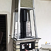 Камин был установлен на основание из натуральной полированной плитки гранит "Габбро-диабаз" 600х600х20 мм. Для термоизоляции стен и перекрытий использовались плиты силиката кальция Silca 250КМ и негорючая вата Rockwool Firebatts с фольгой. Декоративная отделка термокороба выполнена штукатуркой "короед".