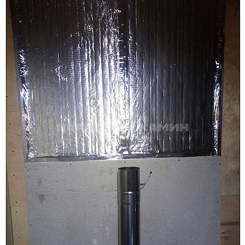 Основание под печь было изготовлена из листа Минерит ЛВ сауна, базальтового картона и агломератных плит. Разделка для выносного топливного канала печи изготовлена из кирпича. Термоизоляционная стена сделана из металлопрофиля и изоляционных плит Rockwool Firebatts, которые поверх обшиты плитами Минерит ЛВ сауна. Стена готова к дальнейшей отделке.