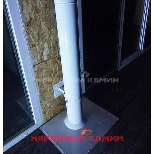 Модульный нержавеющий дымоход LAVA проходит внутри бани и выходит на крышу. Часть дымохода, проходящая через второй этаж, окрашена в белый цвет. Труба надежно закреплена на телескопические кронштейны. На кровле выполнена гидроизоляция с установкой металлического УПК (узел прохода кровли).