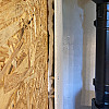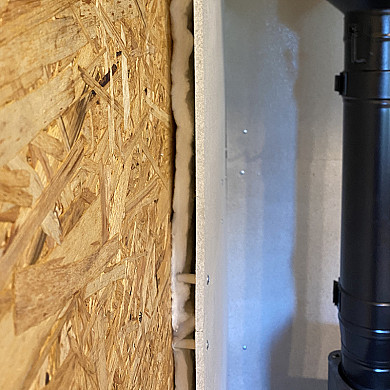 Печь установили на основание из базальтового картона, фаспана и притопочного листа Grillux. Термоизоляционные стенки сделаны из огнестойких плит Фаспан через керамические втулки. Между деревянной стеной и плитами проложено негорючее волокно Avantex Blanket.